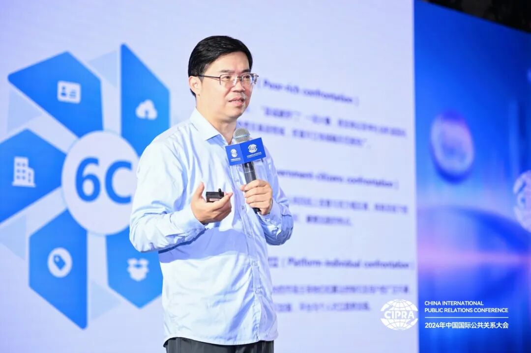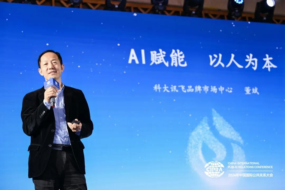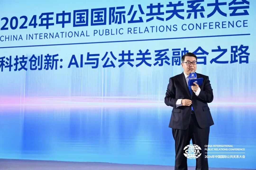 “科技创新:AI与公共关系融合之路”论坛由CIPRA理事、中国商务广告协会内容营销专业委员会秘书长沈健担任主持。清华大学新闻学院和人工智能学院双聘教授、元宇宙文化实验室主任、新媒体研究中心主任沈阳,中国传媒大学广告学院院长、教授、博士生导师赵新利,科大讯飞品牌市场部副总经理董斌,蓝色光标传播集团副总裁王薇,迪思传媒副总裁、AIGC创新研发中心负责人、百度大快消行业策划总监江忠锋分别发表主旨演讲。