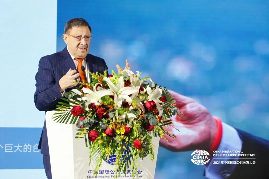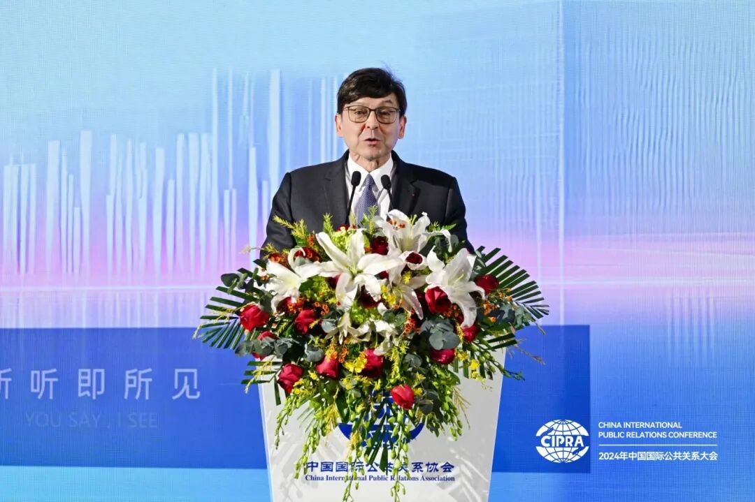 11月15日,由中国国际公共关系协会(CIPRA)主办的2024年中国国际公共关系大会在北京隆重举行。宏盟集团原副主席杜孟(Serge Dumont),世界传播论坛主席马克西姆·巴哈尔(Maxim Behar),FINN Partners高级顾问杜麦克(Jean-MichelDumont),CIPRA副会长、人民日报社原编委、海外版原总编辑王树成,新华通讯社原副社长严文斌,CIPRA顾问、中国外文局原常务副局长郭晓勇,CIPRA顾问、原国家旅游局副局长吴文学,欧莱雅北亚及中国公共事务总裁兰珍珍,恒源祥(集团)有限公司董事长兼总经理陈忠伟,拜耳大中华区传播副总裁张蕾,以及一些中外著名企业总裁、国际公关公司全球CEO、国内外著名公关专家和学者出席会议。CIPRA常务副会长赵大力、CIPRA秘书长周恒斌分别主持大会。